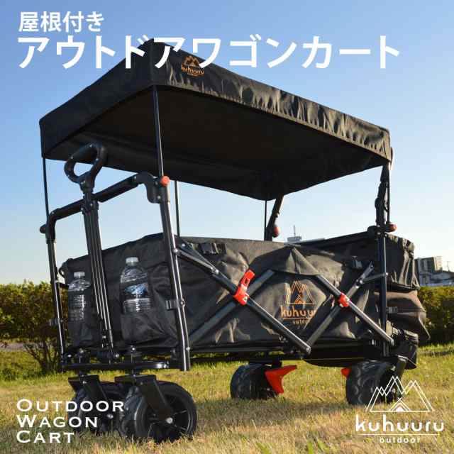 キャリーカート アウトドア用 屋根付き キャリーワゴン ペットカート 大型犬 ブレーキ付 折りたたみ式 (ブラック)