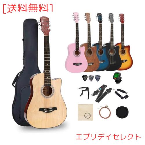 Mocoluz アコースティックギター セット 38インチ 初心者 バスウッド&テックウッド材 練習用 弦楽器 フォークギター スチール弦 おしゃ