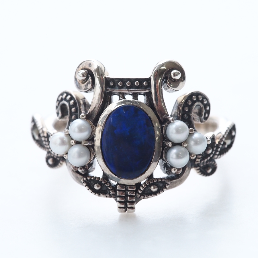 ROKUZAN サンゴ 竪琴 ハープ ブローチ ペンダントトップ (チェーンなし) ネックレス ペンダント トップ ヘッド シルバー925 マーカサイト パール 真珠 爆買