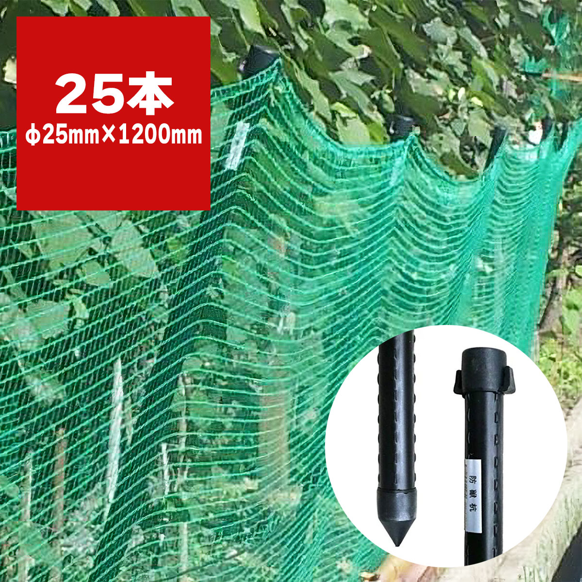 防獣杭 25mm×1200mm 25本入 シンセイ 獣害対策杭 支柱杭 防獣支柱 動物侵入防止 フェンス支柱 畑 防護柵 農業資材 園芸資材野生動物対策
