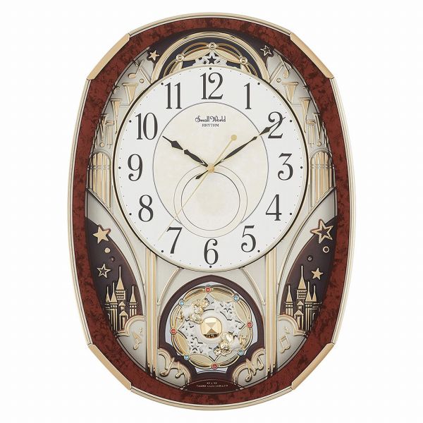 (非常に良い)リズム時計 掛け時計 電波 アナログ からくり スモールワールドノエルM 30曲 メロディ 茶 Small World 4MN513RH23