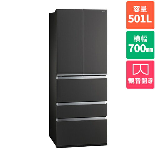 アクア(AQUA) AQR-TXA50R-K マットクリアブラック 冷凍冷蔵庫 両開き 501L 幅700mm