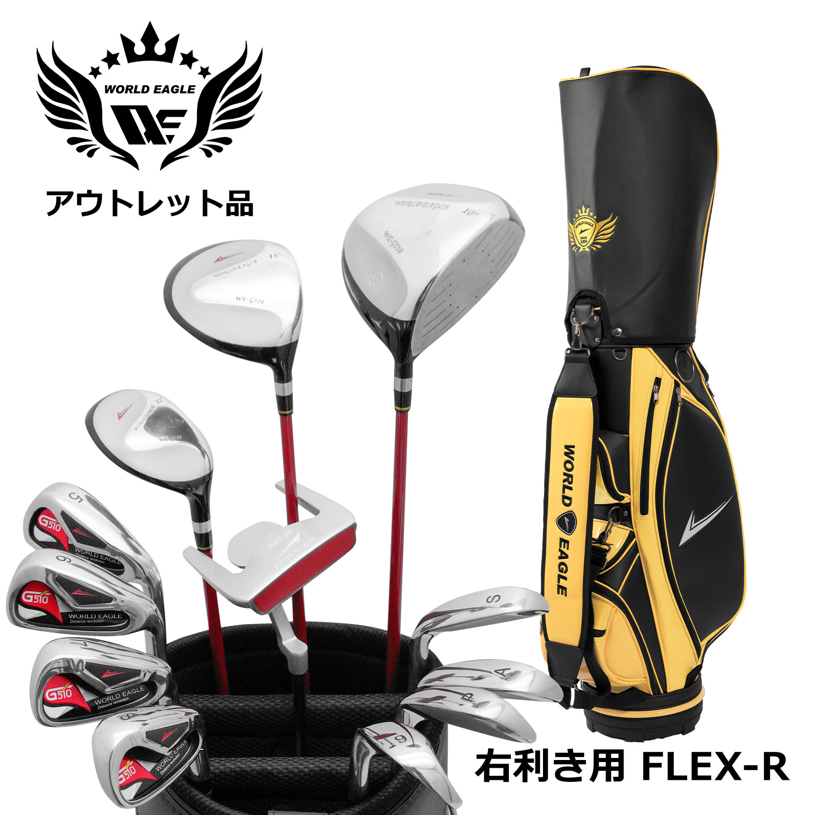アウトレット品(わけあり 展示 撮影) 初心者 WE G510 メンズゴルフクラブセット CBX007 ブラックサンオレンジバッグ付き 右利き用 フレ