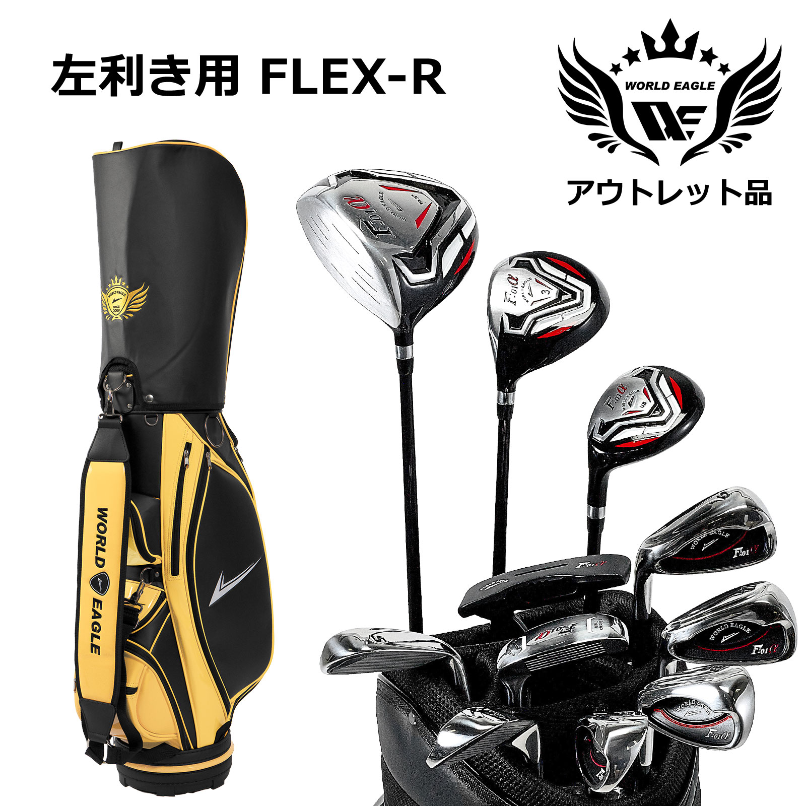 ワールドイーグル F-01αクロスモデル メンズ14点ゴルフクラブフルセット 左用 CBX007バッグ【初心者 初級者 ビギナー】【add-option】