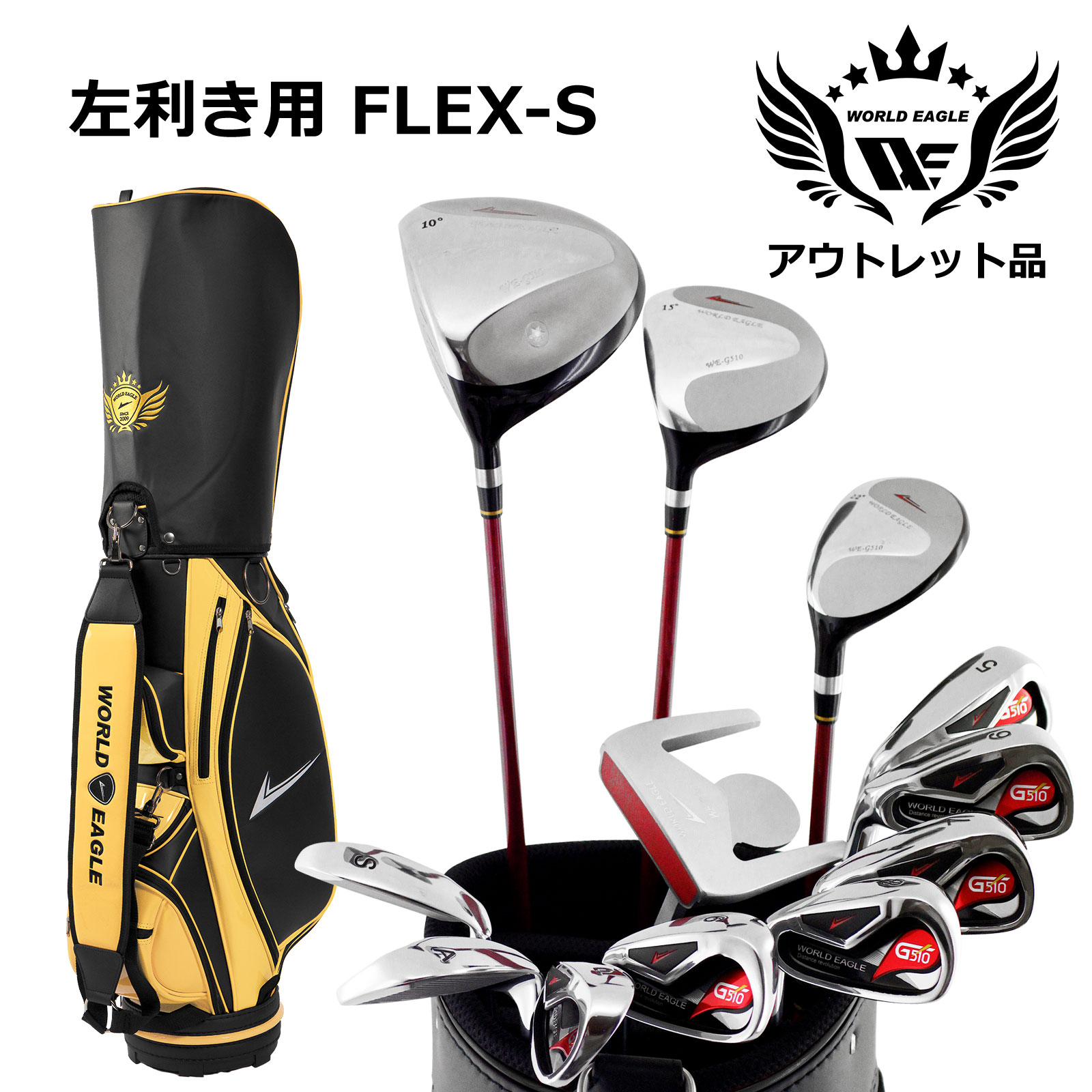 アウトレット品(わけあり 展示 撮影) WE G510 メンズゴルフクラブセット CBX007 ブラックサンオレンジ キャディーバッグ付き 左利き用