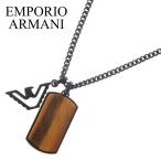Emporio Armaniのドッグタグネックレス。ブラウンタイガーアイ、ブラックのイーグルロゴ、ブラックのステンレススチールが魅力です。ロブスタークラスプ付き。コレクション名:Iconic Tren...