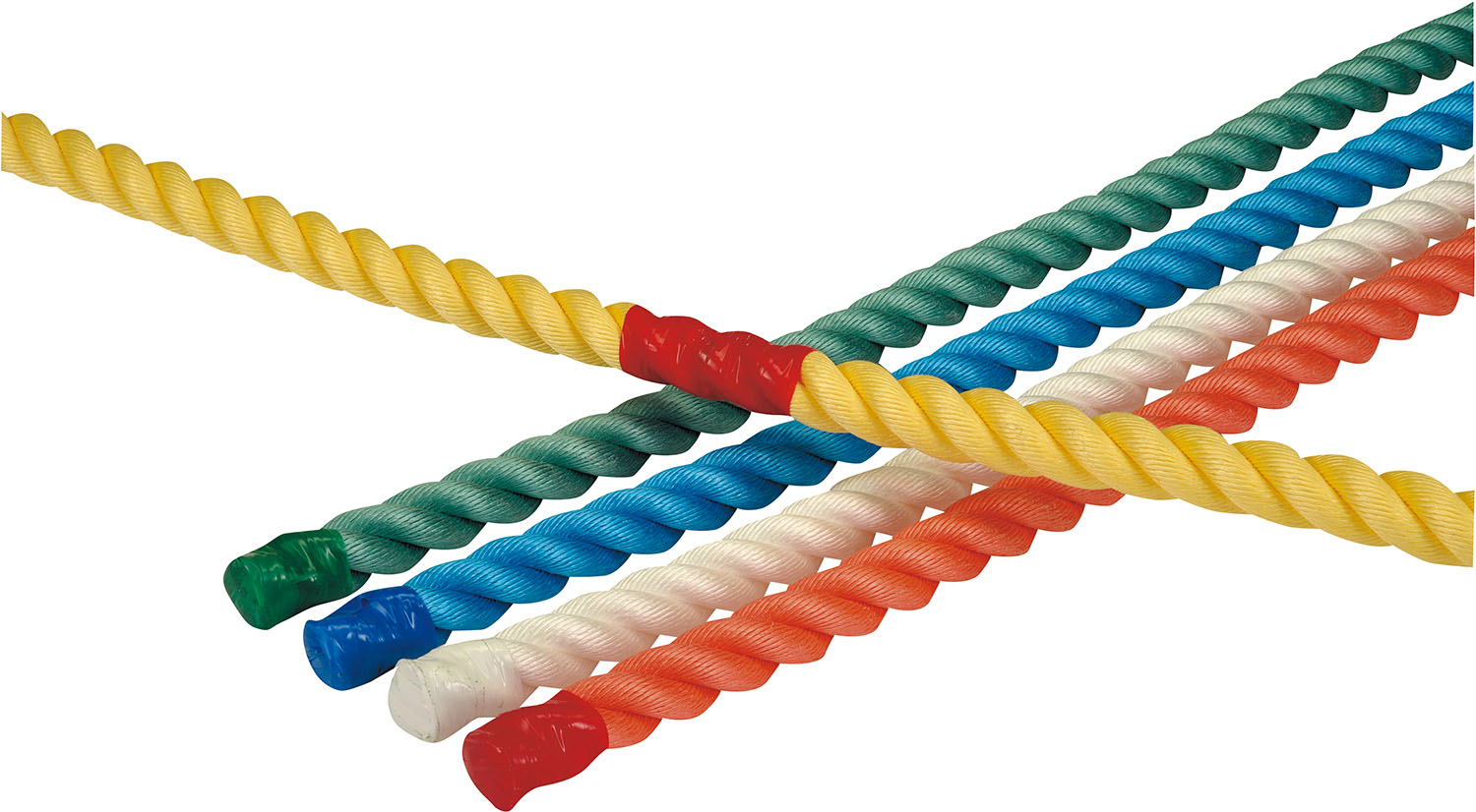 力試しの運動などに ■サイズ:直径 30 mm x長さ 3 m ■材質:ポリプロピレン ■5色1組(白・黄・赤・青・緑) ■両端ヒートカットの後、テープで覆い止め。 末端のテープはロープと同色。 ■白...