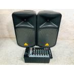 【中古】ベリンガー パワードスピーカー 8chミキサー エフェクター MP3プレイヤー 2本 EUROPORT EPS500MP3