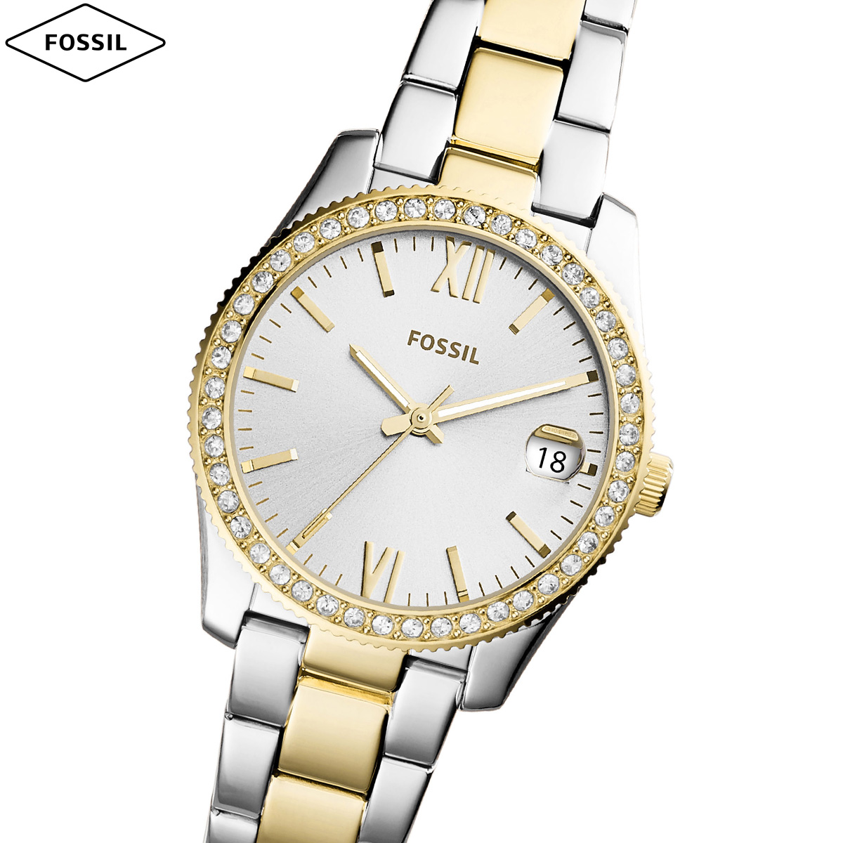 FOSSIL(フォッシル)フォッシル 腕時計 レディース アナログ ステンレス ES431932mm径のケースにデイト表示付き三針ムーブメントを搭載したSCARLETTEMINI。12時と6時の位置に...