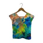 me ISSEY MIYAKE◆転写ワッフルプリーツ/半袖ブラウス/--/ポリエステル/マルチカラー/総柄/MI31FK317