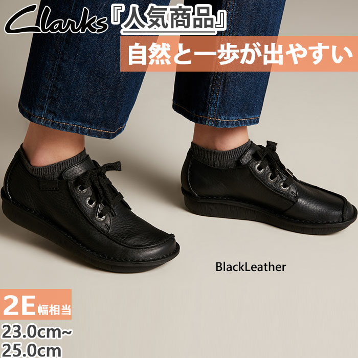 2E幅 クラークス レディース ファニードリーム Funny Dream スニーカー シューズ 紐靴 ローカット 天然皮革 ブラック 黒 送料無料 Clarks