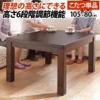こたつ ダイニングテーブル 長方形 6段階に高さ調節できるダイニングこたつ スクット 105x80cm こたつ本体のみ 継ぎ脚 ハイタイプ 高め ナチュラル 北欧[■]