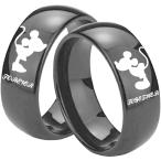 【並行輸入品】XAHH 8mm ブラック ステンレススチール カップルリング 彼 彼女用 ネズミ ミッキー ミニー キス フォーエバー トゥギャザー