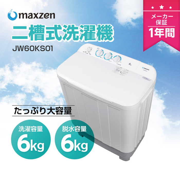 maxzen 【MAXZEN(マクスゼン)】二槽式洗濯機(6.0kg/ホワイト) JW60KS01