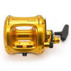 特別仕様のゴールドのアルマイト加工(陽極加工)が施されているオクマ マカイラ レバードラグリールMK-130II。海の上でも映えるゴールドカラーでカジキがサイドプレートにエッチングされています。独自の...