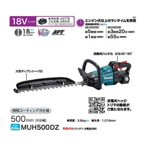 マキタ MUH500DZ 18V 充電式ヘッジトリマ本体のみ 500mm