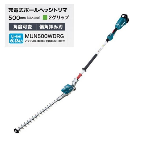 充電式ポールヘッジトリマ MUN500WDRG[角度可変] バッテリBL1860B・充電器DC18RF付 18V 6.0Ah 刈込み幅 500mm 2グリップ 偏角拝み刃 [日時指定・代引不可]