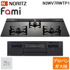 (LINEクーポン有)ノーリツ N3WV7RWTP1-LP ビルトインガスコンロ ファミ(Fami) 幅75cm 3口 プロパンガス用 ブラックトップ/ブラックフェイス NORITZ (法人限定) (代...