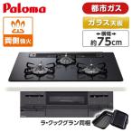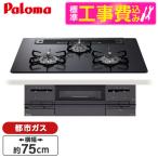 パロマ PD-733W-75GZ-13A 標準設置工事セット マッティーブラック BRilliO ビルトインガスコンロ(都市ガス用・両側強火タイプ・幅75cm)