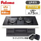 パロマ PD-733W-75GZ-LP 標準設置工事セット マッティーブラック BRilliO ビルトインガスコンロ(プロパンガス用・両側強火タイプ・幅75cm)