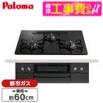 パロマ PD-829W-U60GZ-13A 標準設置工事セット マッティーブラック WITHNA Black Line ビルトインガスコンロ(都市ガス用・3口・両側強火タイプ・幅60cm)