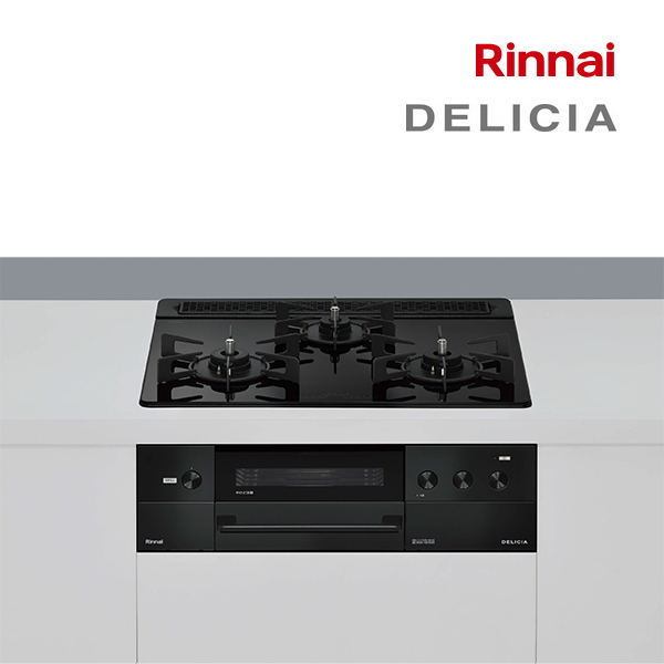 Rinnai RHS31W38M11RNBW-13A 標準設置工事セット ナイトブラック DELICIA [ビルトインガスコンロ(都市ガス用・両側強火タイプ・3口・60cm)]
