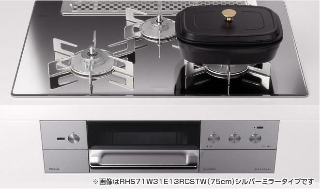 \4/30までエントリーで最大10万Pバック/[RHS71W31E13RCASTW]リンナイ ガスビルトインコンロ DELICIA デリシア 3V乾電池 操作部液晶付き ワイド幅75cm プラチナミラー