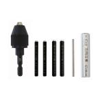 型番6種組 (のこ刃) 商品説明●コルク栓やゴム栓の穴あけに使用する、押出し棒付のコルクボーラーです。 ●あけた孔は刃の外径より小さくなります。 ●別売のハンドルカバーを使用すると、手を痛めずに孔を開...