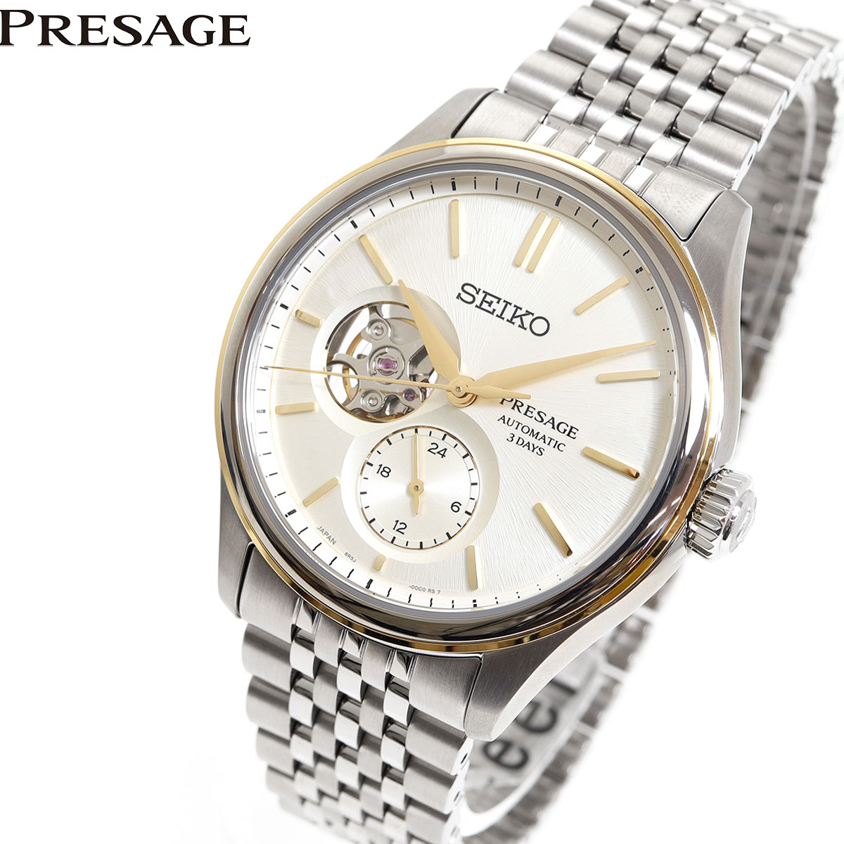 セイコー プレザージュ クラシックシリーズ 素色ダイヤル オープンハート SARJ010 メンズ 腕時計 メカニカル 自動巻き メタルバンド ゴールドアクセント