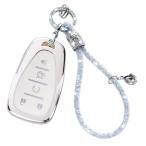 商品名LECART TPU キーフォブカバー シボレー シボレー スパーク アクセサリー Equinox Malibu Blazer用 トラバース カマロ トレイルブレイザー ボルト 5ボタン ホワイ...