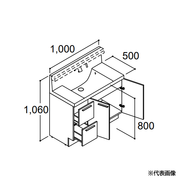 ●INAX/LIXIL 【RBH-1005JFYN-AM】ミドルグレード クレヴィ 化粧台本体 引出タイプ 即湯タッチレス水栓 間口1000mm 寒冷地 受注生産〔HH