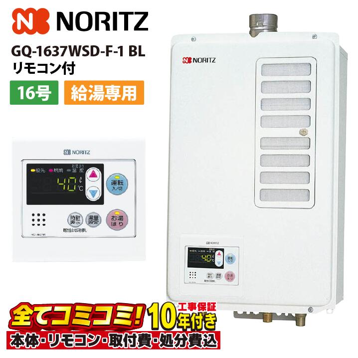 ノーリツ ガス給湯器 交換 工事費込み GQ-1637WSD-F-1 BL 16号 給湯専用 スタンダード