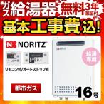 ガス給湯器ノーリツ 給湯器 16号 GQ-1639WS-1 給湯専用 オートストップあり 台所リモコン RC-7607M付 給湯器 工事費込み 都市ガス プロパン 屋外壁掛形(PS標準設置形)給湯器交換...