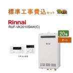 ガスふろ給湯器 コンパクト 壁掛型 20号リンナイRUF-VK2010SAW(C)【標準工事費込セット】・ふろ給湯器・自動湯はりのオートタイプ・追炊き付き・リモコンはMBC-155V(A)、MBCTW...