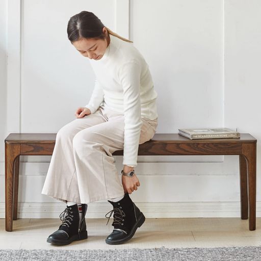 MU RONG ダイニングベンチ アメリカオークウッド 幅110CM 木製 ベンチ エントランスベンチ 二人かけ 長椅子 玄関 北欧風 天然木材 ブラウ