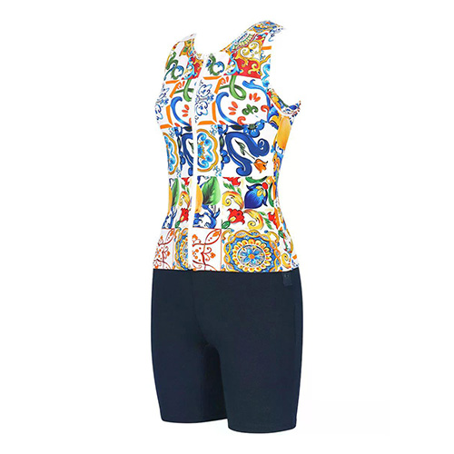 【特徴】 ●せなかシェイプ:背中の段差をフラットにととのえ、後ろ姿すっきりキレイ ●アクアウォーキングカップ:バストをクロスして引き上げ、高い位置でキープ ◆前中心ファスナーつき ◆ウエスト、脚の切り...