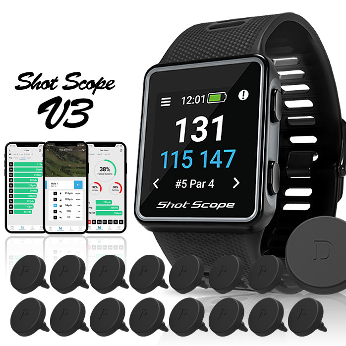 店頭展示品 外箱訳あり ショットスコープ Shot Scope V3 ブラック ウォッチ 時計型 ゴルフ GPS ナビ センサー 16個付き 競技モード 海外