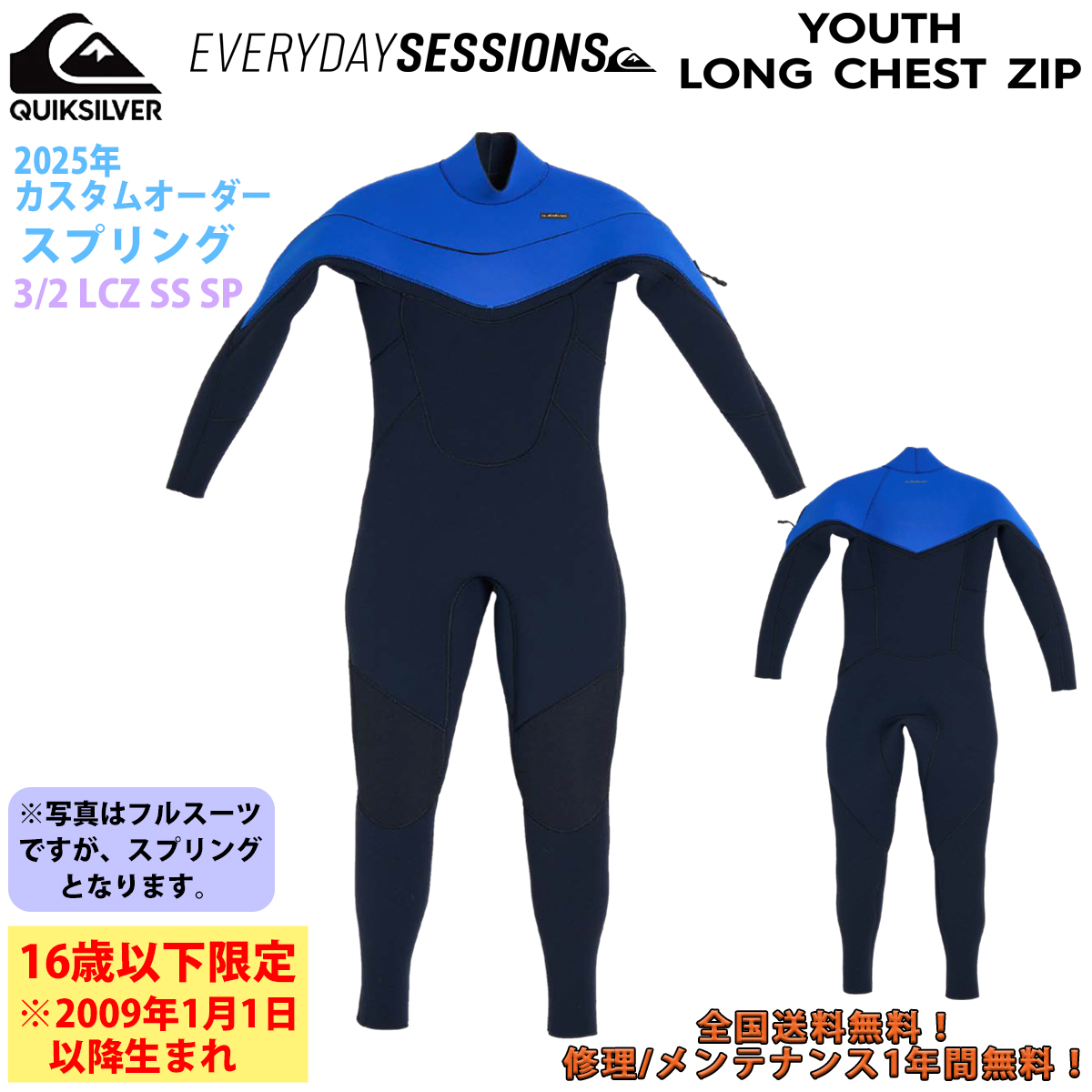 25 QUIKSILVER クイックシルバー ウエットスーツ ロンスプ EVERYDAY SESSIONS BACK ZIP カスタムオーダー ウェットスーツ 春夏用 メンズモデル 2025年 3/2 ...
