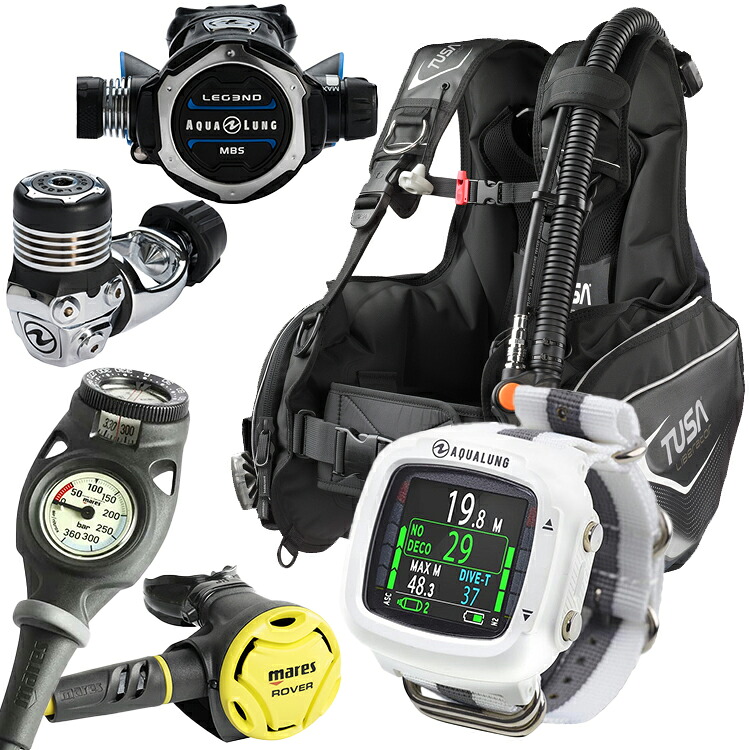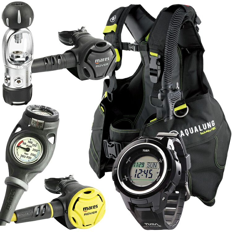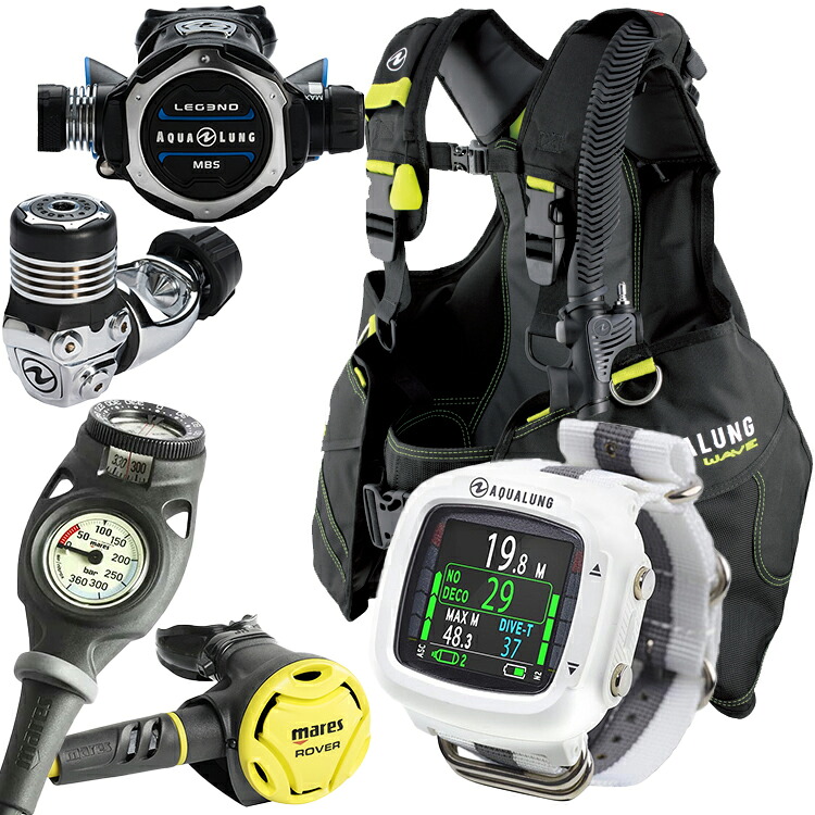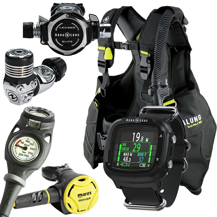 [ アクアラング ] ウェーブ AQUALUNG WAVE BC + レギュ LEGEND ELITE + ダイブコンピュータ ( i330R ) ダイビング重器材5点セット