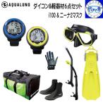 AQUALUNG アクアラング ダイビング 軽器材6点セット ニーナマスク マイスター/ヴァリオスノーケル マイスターフィン TUSA ブーツ マリングローブ アクアメッシュバッグ